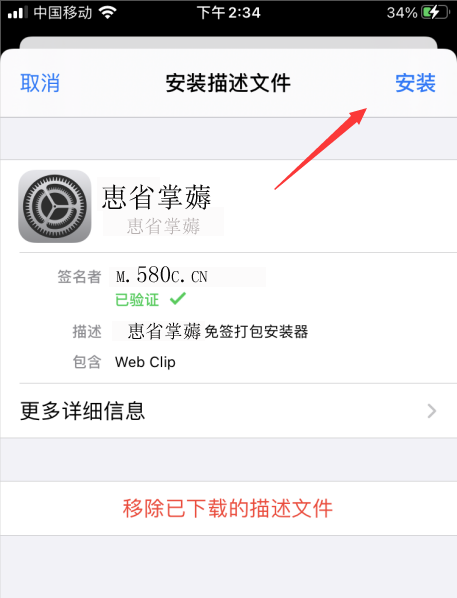 第一步 下载文件huihao.mobileconfig