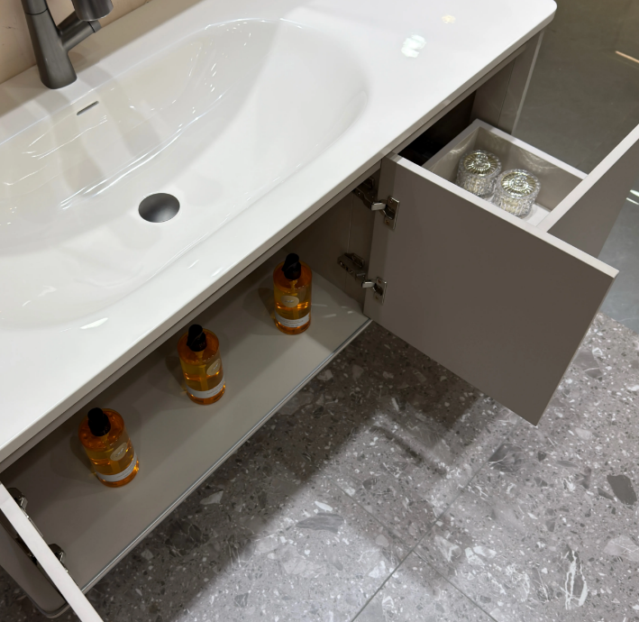 台面采台州顶级肤感亮光盆 .经久耐用,极大提升了浴室柜的实用性和使用寿命!