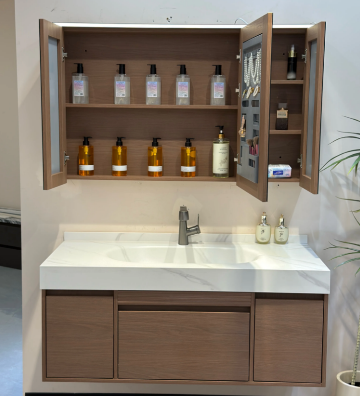 这款镜柜,集多功能于一体。它拥有超大储物空间,能轻松收纳各类洗漱用品,让浴室告别杂乱!